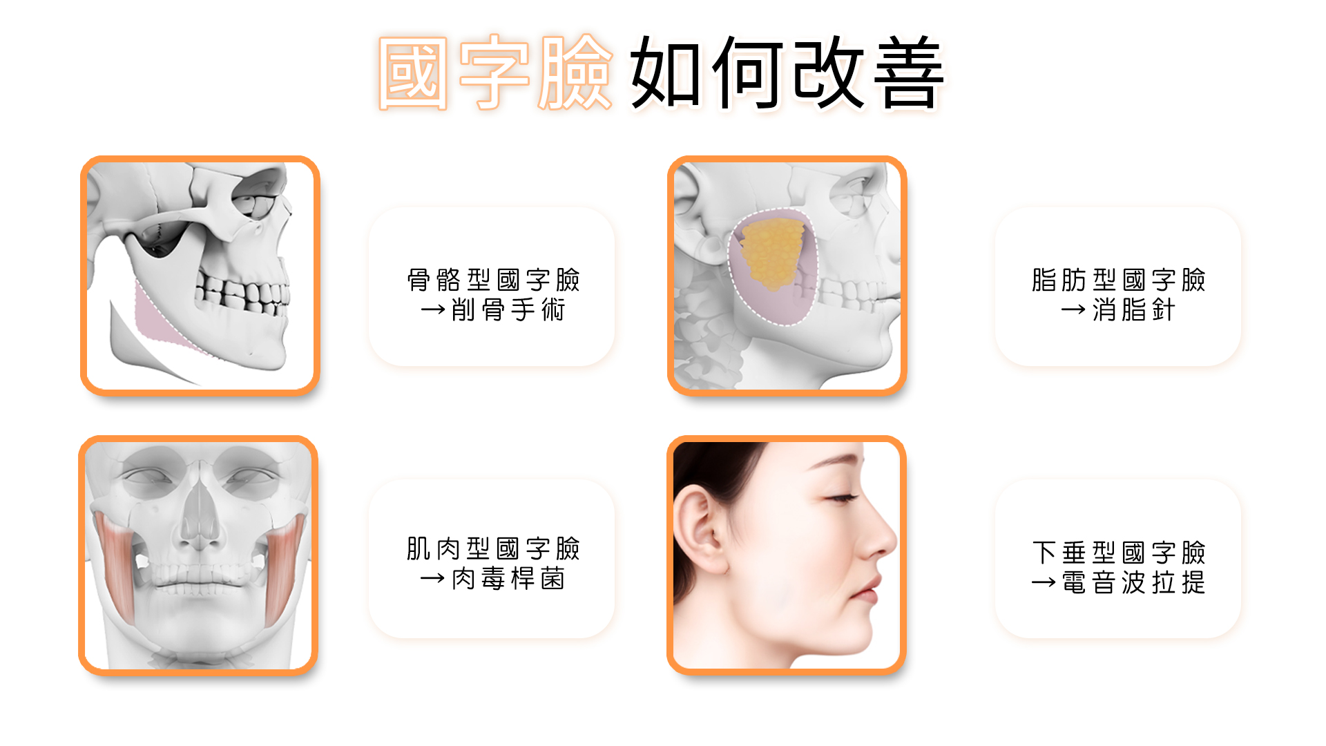隨著年齡增長,膠原蛋白與彈力蛋白逐漸流失,導致皮膚老化與鬆弛,進而使原本的臉型下垂,呈現方形國字臉,不僅顯得年老,還可能讓整體氣色顯得疲憊無神。電音波拉提可以幫助改善下垂型國字臉。