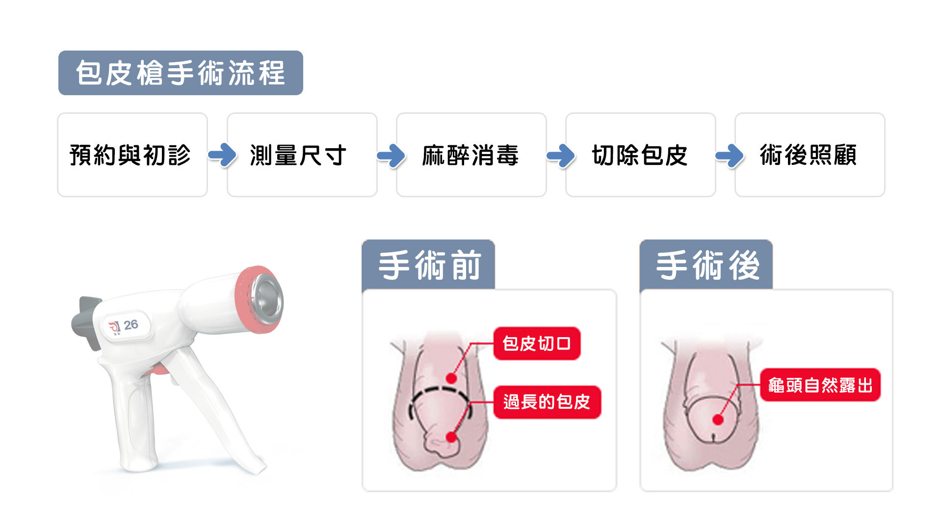 | 包皮槍手術 | 快速、傷口整齊、疼痛感低、恢復快 | 需專業醫師操作、設備費用較高 |
