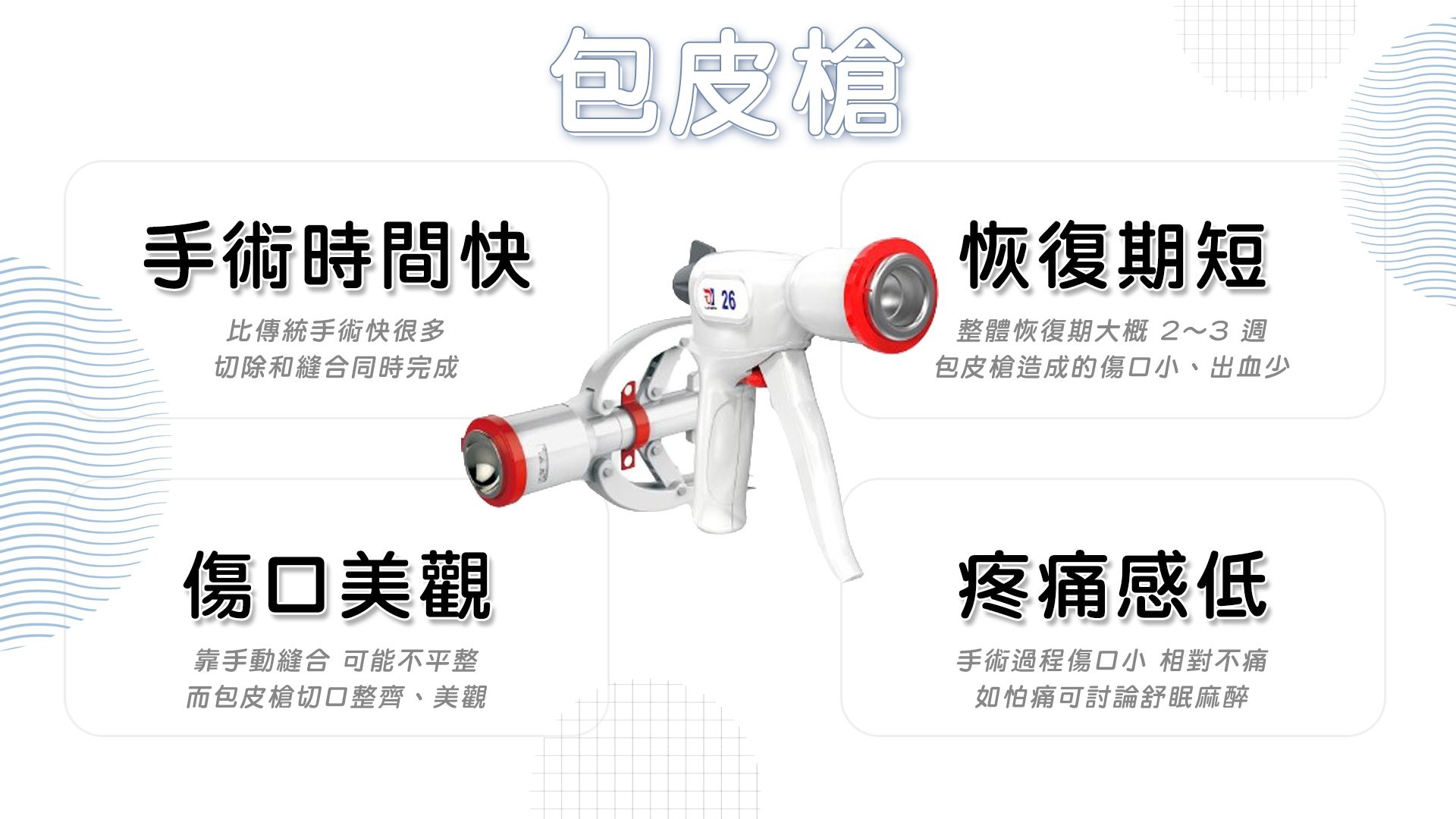 說到割包皮,很多男生心裡應該都浮現不少疑問吧?像是:「我到底需不需要割包皮?」「手術方式這麼多,到底要選哪一種?」如果你有稍微查過資料,可能已經看過不少醫師提到的「包皮槍手術」,那這個聽起來很厲害的包皮槍到底是什麼東西呢?